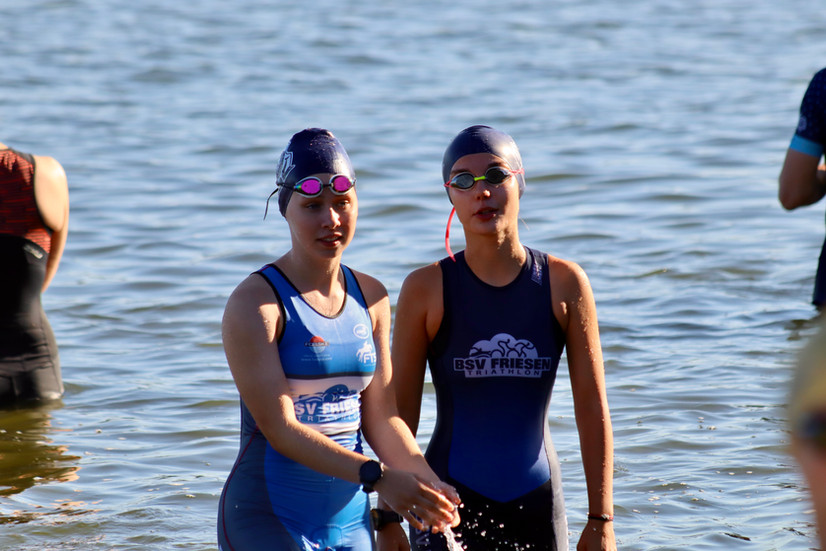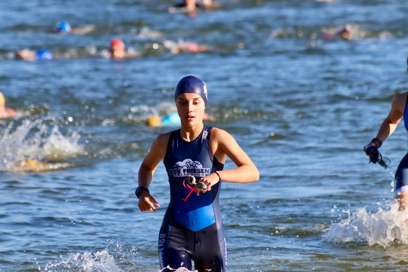 Emilia zeigte eine sehr gute Schwimm- und Radleistung, konnte beim Laufen jedoch das Tempo nicht mehr mitgehen und wurde 10. (Platz 5 AK Jugend B). Allison folgte auf Platz 7 der AK.